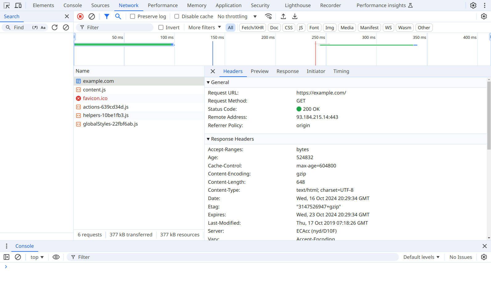 Use the browser developer tools for the browsers ‘point of view’ of the HTTP request and response.